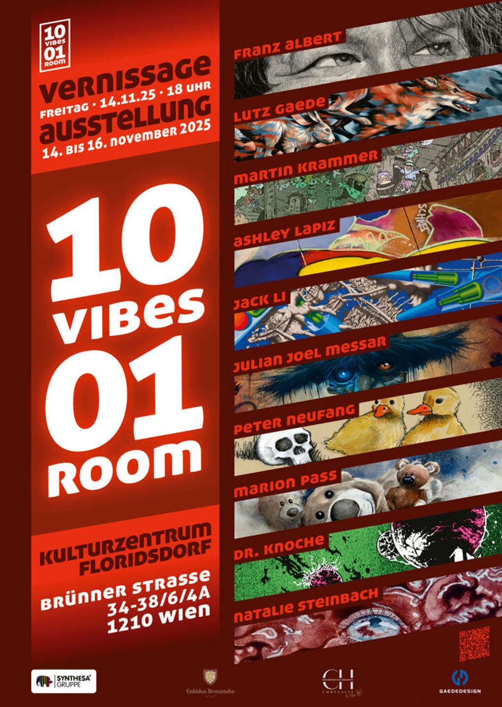 Floridsdorf wird bunt: Mitten im grauen November bringt eine neue Gruppenausstellung frischen Wind und kreative Energie ins Herz des 21. Bezirks. Unter dem Titel „10 Vibes – 1 Room / Artist for Artist“ zeigen zehn Künstler*innen ihre ganz persönlichen Zugänge zu Kunst, Raum und Gefühl.