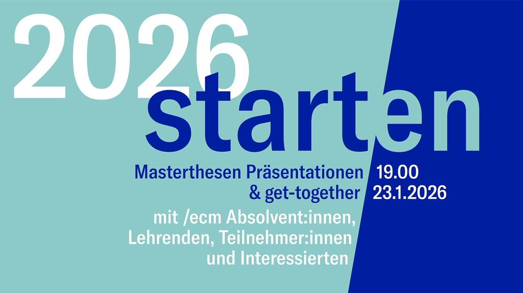 Masterthesen Präsentationen & get together mit /ecm Absolvent:innen, Lehrenden, Teilnehmer:innen und Interessierten