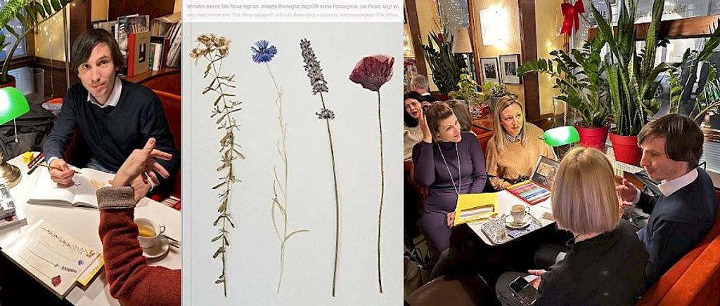 “Im Cafe Korb, wo Rosa und ihr Kapitän so gerne anlegen: Brandstätte 9, 1010 Wien. Susanne Widl, die Inhaberin, reserviert für diesen Zweck jedes Jahr an diesem Nachmittag einen Tisch in ihrer imaginären Bibliothek.