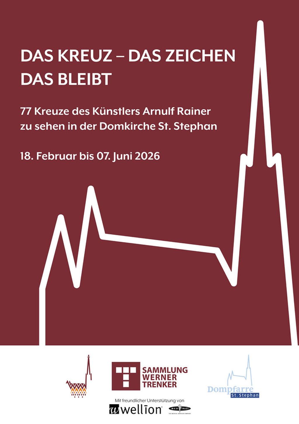 Über einen Zeitraum von vier Monaten wird dem wichtigsten Symbol des Christentums im Wiener Stephansdom besondere Bedeutung beigemessen: Gezeigt werden 77 Kreuze von Prof. Arnulf Rainer aus der Sammlung Werner Trenker – darunter sieben Kreuze auf Holz sowie sämtliche Kreuz-Kaltnadelradierungen, die Arnulf Rainer seit 1956 geschaffen hat.