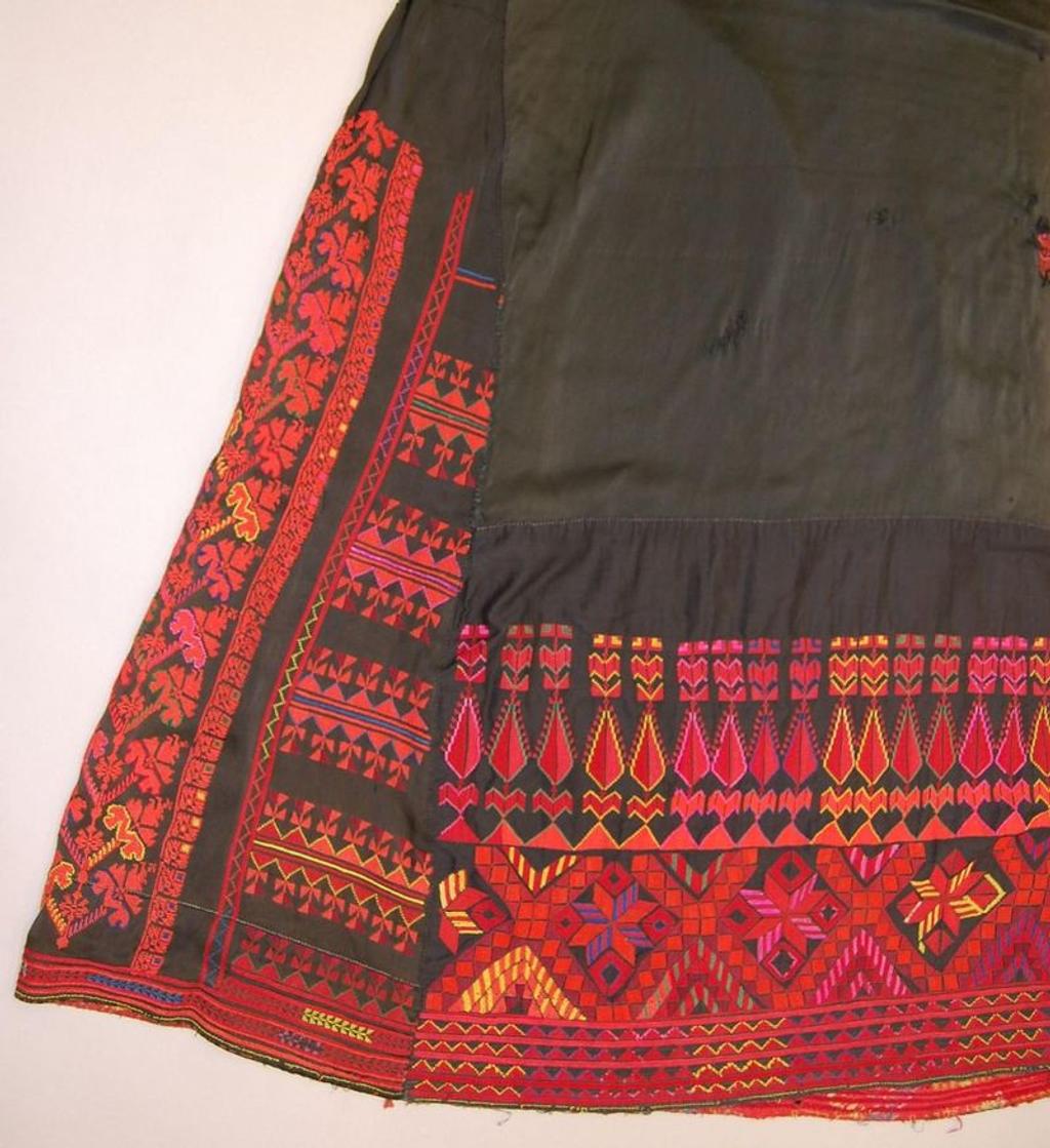 Im Jahr 1980 zeigte das Weltmuseum Wien (damals „Museum für Völkerkunde“) die Ausstellung Beduinen im Negev. Die Stücke dieser Schau, Leihgaben aus einer Privatsammlung, gingen 1986 in die Sammlung des Zürcher Völkerkundemuseums ein. Im Jahr 2023 begann Saada Elabed, die familiären Verbindungen in die Region hat, die Stickereien unter diesen Stücken mit einem neuen Zugang zu befragen. Wo das Museum bisher hauptsächlich Dokumente beduinischer Kultur sah, konnte sie mit Nachkommen der Hersteller*innen Schlaglichter auf die komplexe Vergangenheit und vor allem auf die heutige verwickelte Gegenwart beduinischer Gemeinschaften in Israel/Palästina werfen.