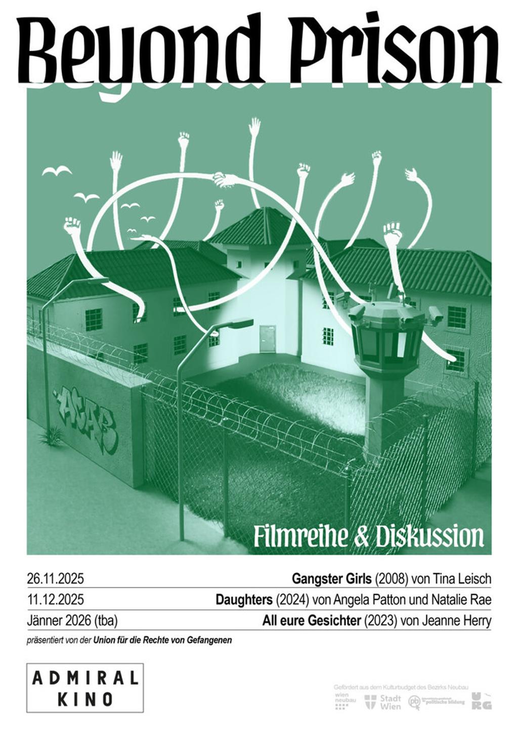 In unserer Filmreihe “Beyond Prison” beschäftigen wir uns mit Fragen, die über die herkömmliche Vorstellung von Gefängnis hinausgehen: mit Formen des Widerstands innerhalb und außerhalb der Mauern, mit Nähe trotz Isolation und mit Alternativen zu Strafen und Wegsperren.