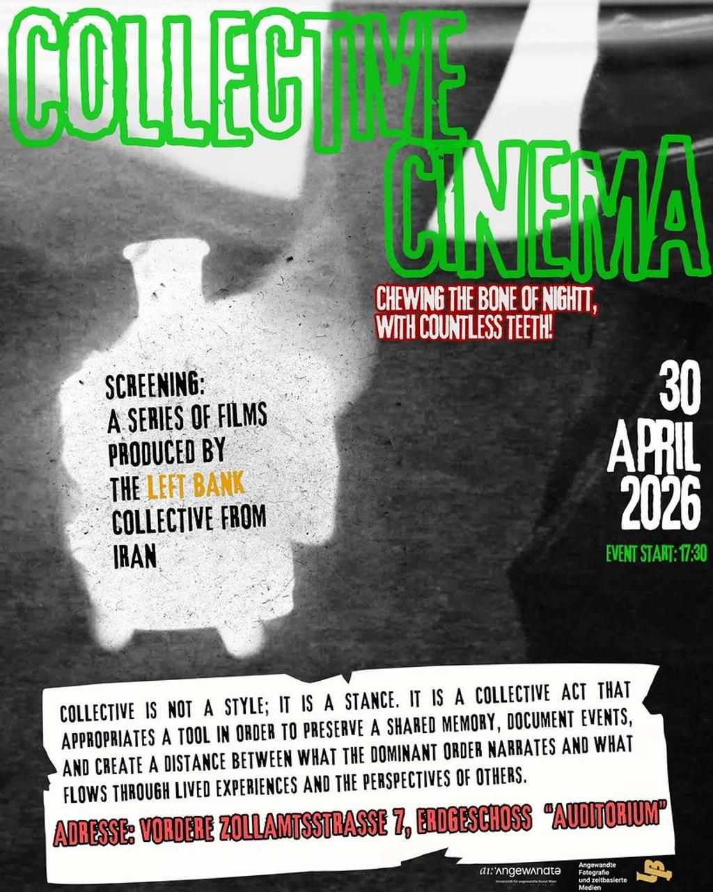 The Left Bank is an underground collective active in Iran. With a fresh and urgent energy, they challenge the body of a corrupt, rent-driven, anti-aesthetic and anti-historical cinema. Working through a council-based structure and workshops under the supervision of Parham Sarkeshiki, the collective produces experimental and underground films that remain deliberately indifferent to mainstream cinema, festival cinema, and state-sponsored cinema. Taking a clear stance against the hegemony of narrative film, The Left Bank insists on another cinematic language language perhaps a more truthful one rooted in lived experience, shared memory and formal resistance.