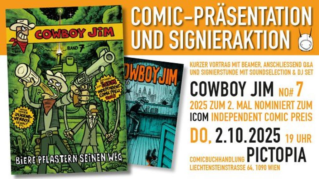 Diesen Donnerstag den 2.10. präsentiert Bertram Könighofer sein selbstverlegtes Cartoon-Western-Epos mit einem eigenem Beamer-Vortrag gefolgt von einem moderierten Künstlergespräch verfolgt von einer Signierstunde und abgeschossen durch ein einzigartiges Country´n´Western-Dubstep-DJ Set in unserer Buchhandlung!