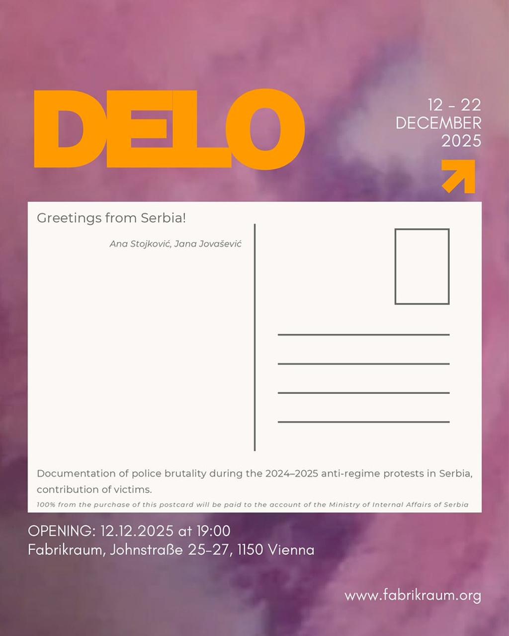 Die Ausstellung entsteht aus einem turbulenten politischen Moment in Serbien in den Jahren 2024–2025, geprägt von Protesten, Polizeigewalt und medialer Manipulation. Die versammelten Arbeiten untersuchen, wie Gewalt zu Inhalt wird – wie Wunden, Bildfragmente und feindselige Narrative als konsumierbare Bilder zirkulieren. Durch die Neubearbeitung dieses Materials legen die Künstler*innen die Mechanismen der Ausbeutung offen und verwandeln sie zugleich in Akte des Widerstands. Die Ausstellung markiert eine paradigmatische Verschiebung von umetnički rad hin zu umetničko delo. Während sich beide Begriffe mit „Kunstwerk“ übersetzen lassen, verweist delo auf eine Tat – eine Handlung mit Konsequenzen, in der Kunst nicht nur entsteht, sondern getan, gelebt und verkörpert wird.