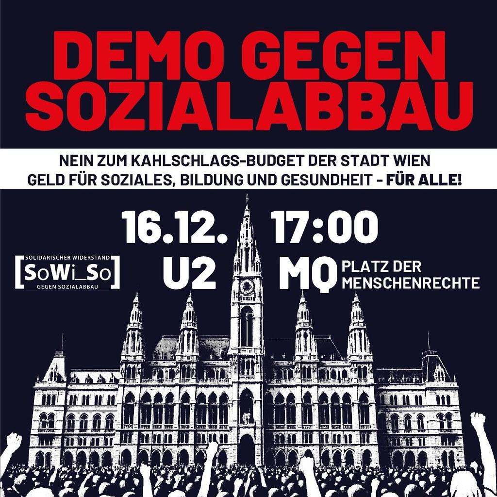 Wir als Bündnis „Solidarischer Widerstand gegen Sozialabbau“ (SoWi_So) weisen ausdrücklich darauf hin, dass jeder Euro weniger in diesen Bereichen dazu führt, dass Wien nicht mehr als Sozialstadt bezeichnet werden kann. Die Streichung der Mindestsicherung für subsidiär Schutzberechtigte ist nur der Gipfel des Eisberges, der noch dazu einen rassistischen Touch hat.