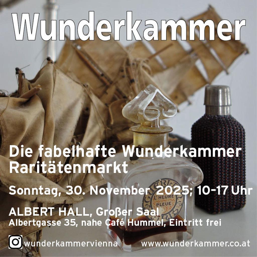 Das Jahr neigt sich dem Ende zu: der Raritätenmarkt Wunderkammer überrascht daher nochmals mit einer Vielfalt an Kuriosem und Unerwartetem. Ausgewählte Händler und Händlerinnen bieten am 1. Adventsonntag, dem 30. November 2025 Gelegenheit das Besondere zu finden und überraschende Entdeckungen zu machen. Wer offen für Neues ist, nicht sucht, sondern findet und das Kunstvolle schätzt, hat dazu hier reichlich Gelegenheit: ob rare Sammel-Stücke, seltene Bücher oder charmante Kleinigkeiten als Weihnachtsgeschenk – viele Dinge die das Leben reicher und damit schöner machen gibt es hier. Darin liegt Sinn und Zweck des Raritätenmarktes Wunderkammer der drei Mal pro Jahr stattfindet.