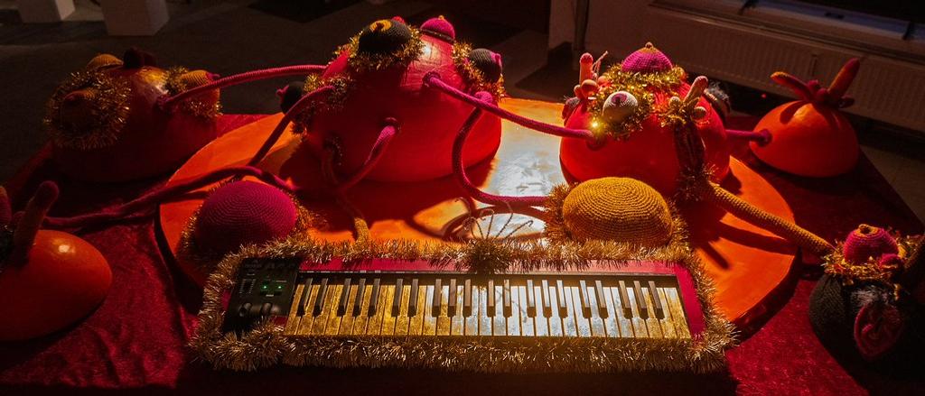Ein Satz kann sich einbrennen. Er kann sich festsetzen, anstoßen und etwas in Bewegung setzen. Er widerspricht, unterbricht und verbindet sich mit anderen. Die Feminismusmaschine ist eine Sammlung solcher Sätze und Aussagen, eingebaut in Apparaturen, die schallern, leiern und schreien. Sie sind Spielzeug, Instrument und Störung zugleich und eine Absage an die ermüdende Wiederholung patriarchaler Argumente. In einem partizipatorischen Akt kann man die Maschine aktivieren und die bunten Knubbel reiben, die goldenen Tasten drücken und die gehäkelten Genitalien streicheln. Diese sinnlichen Apparaturen übernehmen den feministischen Kampf – eine akustische Intervention, die Raum beansprucht, Teilhabe fordert und Widerstand leistet. Laut, konfrontativ und mit viel Humor.