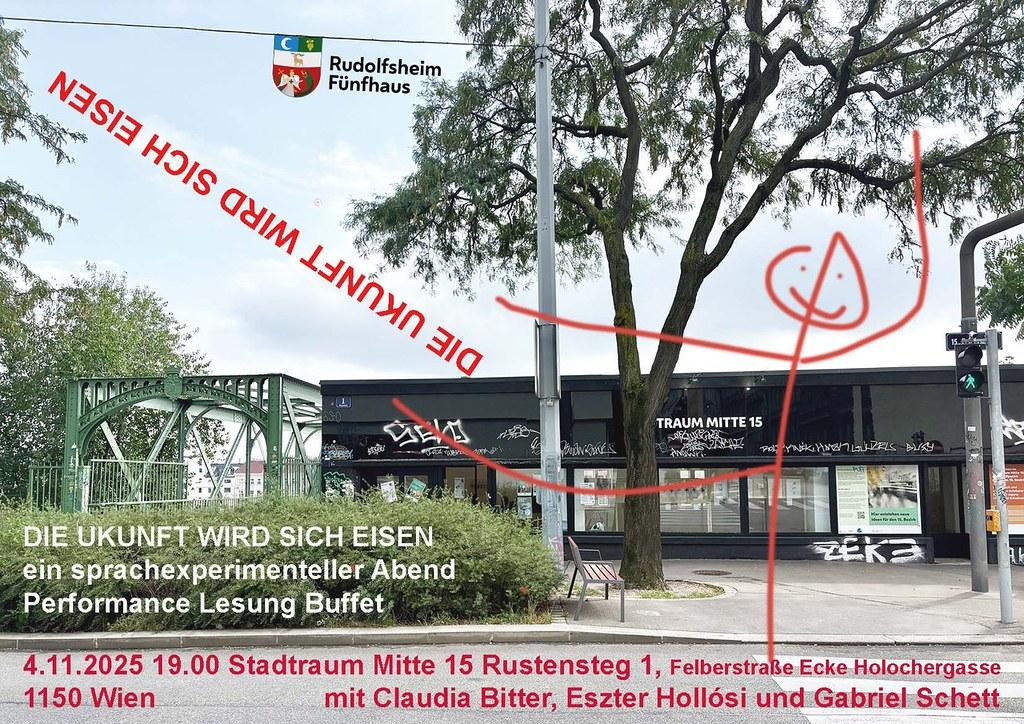 ➜ edit + new album ev_031J4mX5q1laLcmTiIhmEQ 1 Termin Dienstag 4. November 4. November Nov. Dienstag Di 19:00 Lesung Die Ukunft Wird Sich Eisen ein sprachexperimenteller Abend: Lesung, Hörspiel-Performance Beteiligte Artist(s): Claudia Bitter, Eszter Hollósi und Gabriel Schett ...Mehr lesen