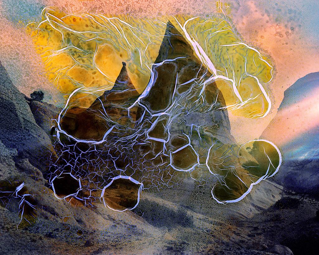 Das Fotoprojekt „The Residue of Starlight“ untersucht die Wüstenlandschaften von Nordchile, New Mexico und Westaustralien. Alle drei Standorte sind mit ähnlichen Risiken wie steigenden Temperaturen, Dürren und Waldbränden konfrontiert, da sich die Klimakrise verschärft. Alle sind auch Heimat von Kulturen, die eine besonders starke Verbindung zum Himmel, zu den Sternen und zum Universum außerhalb der Erde haben. Die mit einer Großformatkamera aufgenommenen Fotografien zeichnen sich durch Mordançage, Film-Suppe und die Verwendung Jahrzehnte alter, abgelaufener Filme aus. Die Kombination dieser Verfahren auf der Farbfilmebene erzeugt überirdische und dennoch taktile Bilder – eine Kollision des Greifbaren und Ungreifbaren. Diese Bilder beschwören psychedelische Traumlandschaften herauf und untersuchen die tiefe Verbundenheit mit dem Numinosen, die in der Wüste spürbar ist, heute mehr denn je an dieser Schwelle zum ökologischen Kollaps. Die Bilder werfen auch Fragen über die menschliche Zeit im Vergleich zur geologischen Zeit auf. Wie wird die Erde am Ende unseres Lebens aussehen? Nach unserem Aussterben als Spezies? Ist die Menschheit nur ein vorübergehender Moment im Zeitgefühl der Erde?