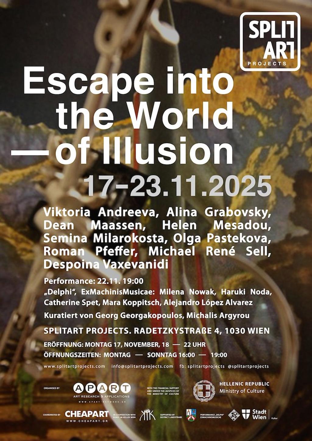 Zeitgenössische Kunst AusstellungZwischen Hollywood-Glamour, künstlichen Heldenreisen und echten Weltfluchten baut Escape into the World of Illusion eine Bühne, auf der Kunst unsere allzu menschlichen Ausweichmanöver glänzend ausstellt.