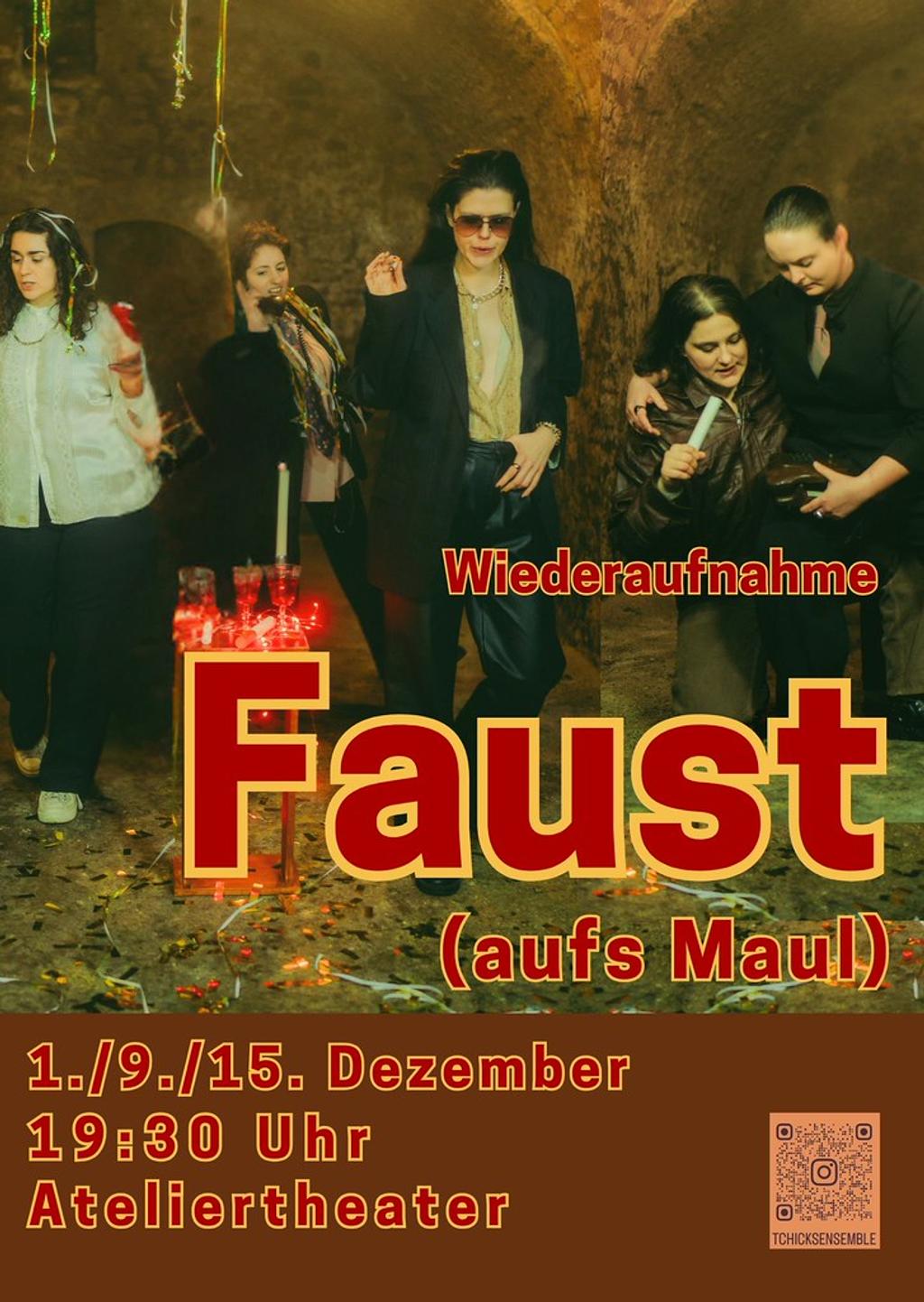 Im Wechselspiel zwischen Probensituationen der Kästchenszene aus Faust, sowie der immer absurder werdenen Late Night Show entwickelt sich ein misogynes Crescendo jenseits Himmel und Hölle.