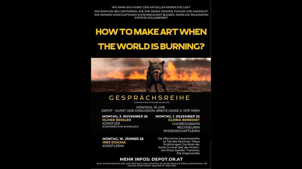 Wie kann sich die Kunst den aktuellen Krisen stellen? Wie kann sie neu definieren, wie wir sehen, denken, fühlen und handeln? Über diese Fragen diskutiert Klaus Speidel mit Kunstschaffenden im Rahmen dieser Reihe. Gloria Benedikt, die in Wien und an der Harvard University studierte, verbindet seit vielen Jahren darstellende Kunst mit wissenschaftlicher Forschung. Ihre Arbeiten wurden u. a. im Kennedy Center, in der Carnegie Hall sowie im Europäischen Parlament und der UNESCO präsentiert. In Tanz- und Theaterperformances macht sie besonders auf die Folgen des Klimawandels aufmerksam.