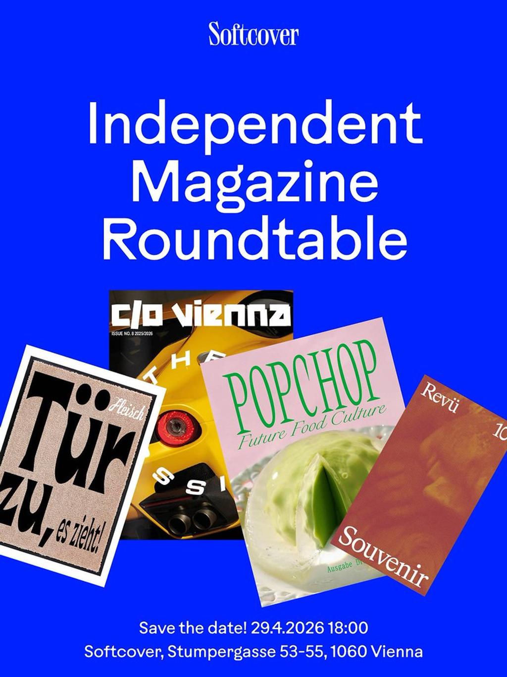 Wie entsteht ein Magazin? Wer und was steckt dahinter? Wir laden euch herzlich zu einem spannenden Diskussionsabend mit vier ganz unterschiedlichen unabhängigen Magazinen ein: C/O Vienna, Fleisch, Popchop, Revü. Wir werden diese Themen im Gespräch beleuchten und euch einen Einblick in die Welt der Magazine geben: Wie funktionieren unabhängige Magazine und Self-Publishing? Vom Konzept bis zum fertigen Druckprodukt: Wie entsteht das Grafikdesign, wie ist ein Team aufgebaut, wie funktionieren Verkauf und Vertrieb, welche Finanzierungsmöglichkeiten gibt es und was genau ist ein „Magazin“? Wir laden euch herzlich ein, an der Diskussion teilzunehmen und mit uns Gedanken auszutauschen.