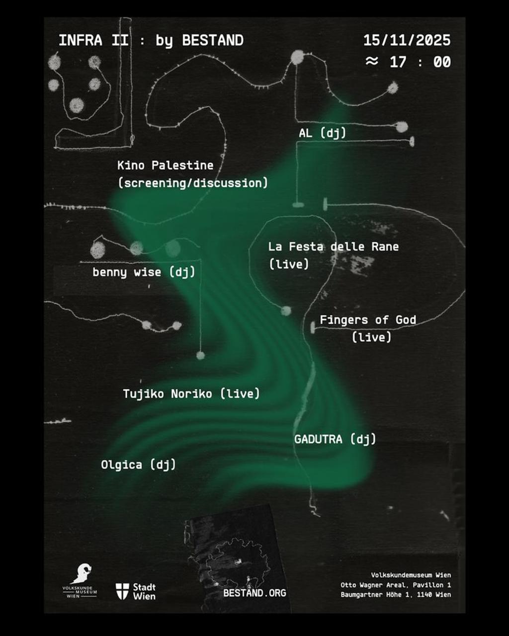 Die nächste Veranstaltung von Bestand infra_II (15.11.2025, ab 17:00 im Volkskundemuseum am Otto Wagner Areal, Eintritt: freie Spende) ist der Versuch ein hochwertiges experimentelles Musikprogramm mit Diskursformaten zu verschränken.