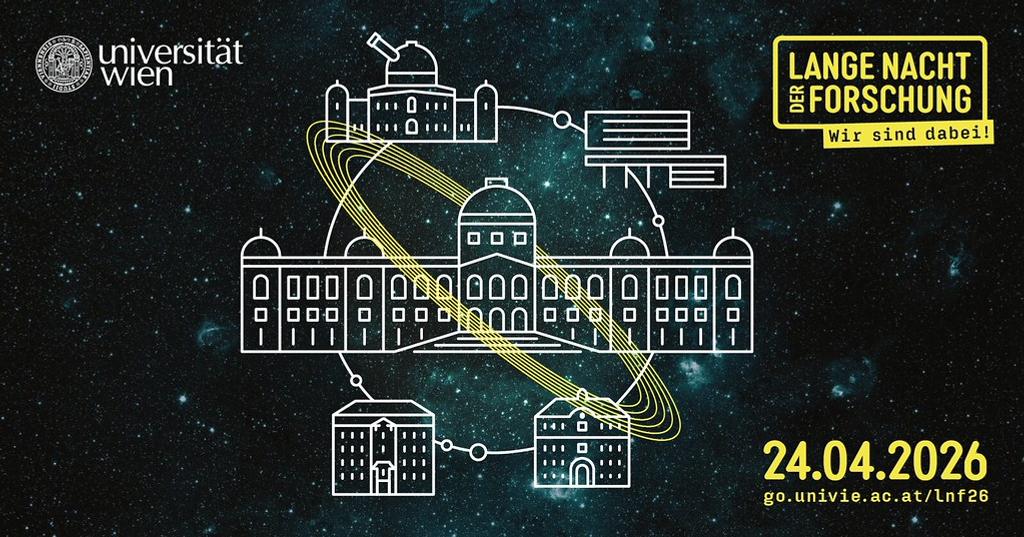 Die Universität Wien ist bei der Langen Nacht der Forschung am 24. April 2026 mit über 100 Stationen an 5 Standorten dabei: Hauptgebäude, Fakultät für Chemie, Fakultät für Physik, Sternwarte und Biologiezentrum.