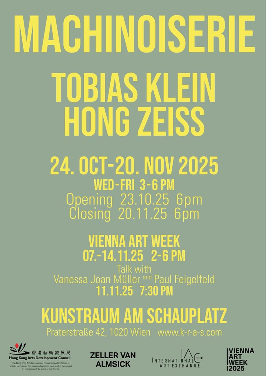 Tobias Klein (Hong Kong) and Hong Zeiss (Wien) ergänzen und widersprechen einander wie Mikro- und Makrokosmos. In ihrer ersten gemeinsamen Ausstellung treffen Kleins Neuinterpretationen antiker chinesischer Gelehrtensteine (供石 Gongshi), die ein Gestell aus Gestein und 3D-gedruckten Strukturen bilden, auf die Äder- und Maserungen der Malereien von Zeiss, deren Skalierung und Distanz – ob nah oder fern – stets unklar bleibt. Obwohl sie nicht im Austausch entstanden sind, untersuchen die Arbeiten einander auf einer strukturellen Ebene und eröffnen sich gegenseitig Dimensionen nicht-menschlicher Wahrnehmung. Die gegenseitige Beobachtung der Objekte und Bilder erlaubt uns einen raren Einblick in Exil des Anorganischen, in Gezeitenströme und mineralische Strukturen, der uns eigentlich unmöglich, wenn nicht sogar unerlaubt ist. Wir werden heimliche Zeug*innen von Kommunikationsprozessen, die sich unserem Verständnis dessen, was Kommunikation ist, entziehen; die nur in Erdzeitaltern oder jenseits der Zeit gemessen werden können; und deren eigentliche Qualitäten jenseits des Sinns und der Sinne, wie wir sie kennen, liegen.