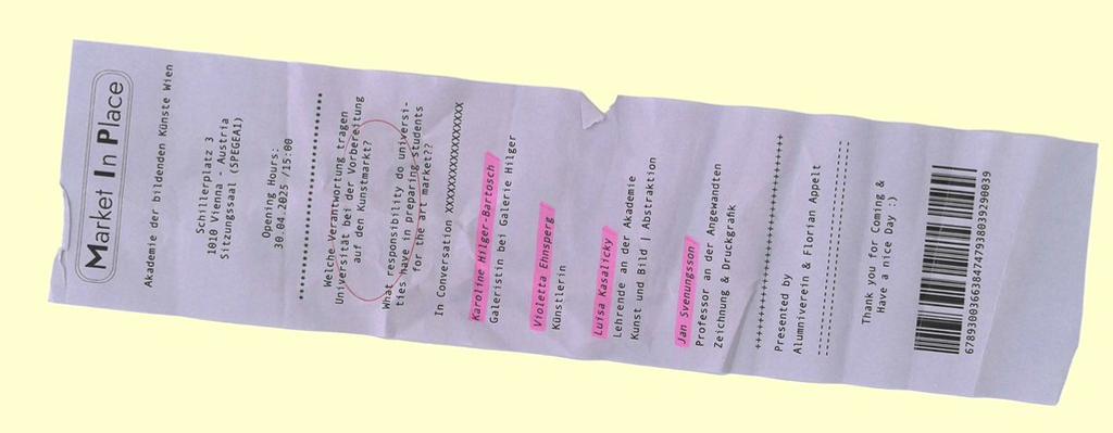 Market in Place ist eine Veranstaltungsreihe des Alumnivereins, bei der aktuelle Entwicklungen am Kunstmarkt im Fokus stehen und gemeinsam mit Expert_innen aus diesem Feld diskutiert werden.