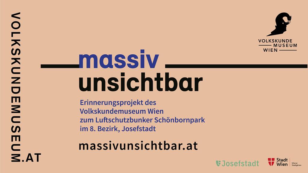 Mit dem Projekt „massiv unsichtbar“ setzen wir es uns zur Aufgabe, dem Unsichtbarsein des Bunkers entgegenzuwirken und die historischen Zusammenhänge ebenso transparent und nachvollziehbar zu machen wie die Prozesse des Verschwindens. Vor Ort im Schönborpark erzeugen visuelle und akustische Elemente Aufmerksamkeit, eine vertiefende Auseinandersetzung mit Gebäude und Geschichte stellt das Volkskundemuseum online auf einer eigenen Website zur Verfügung: massivunsichtbar.at.