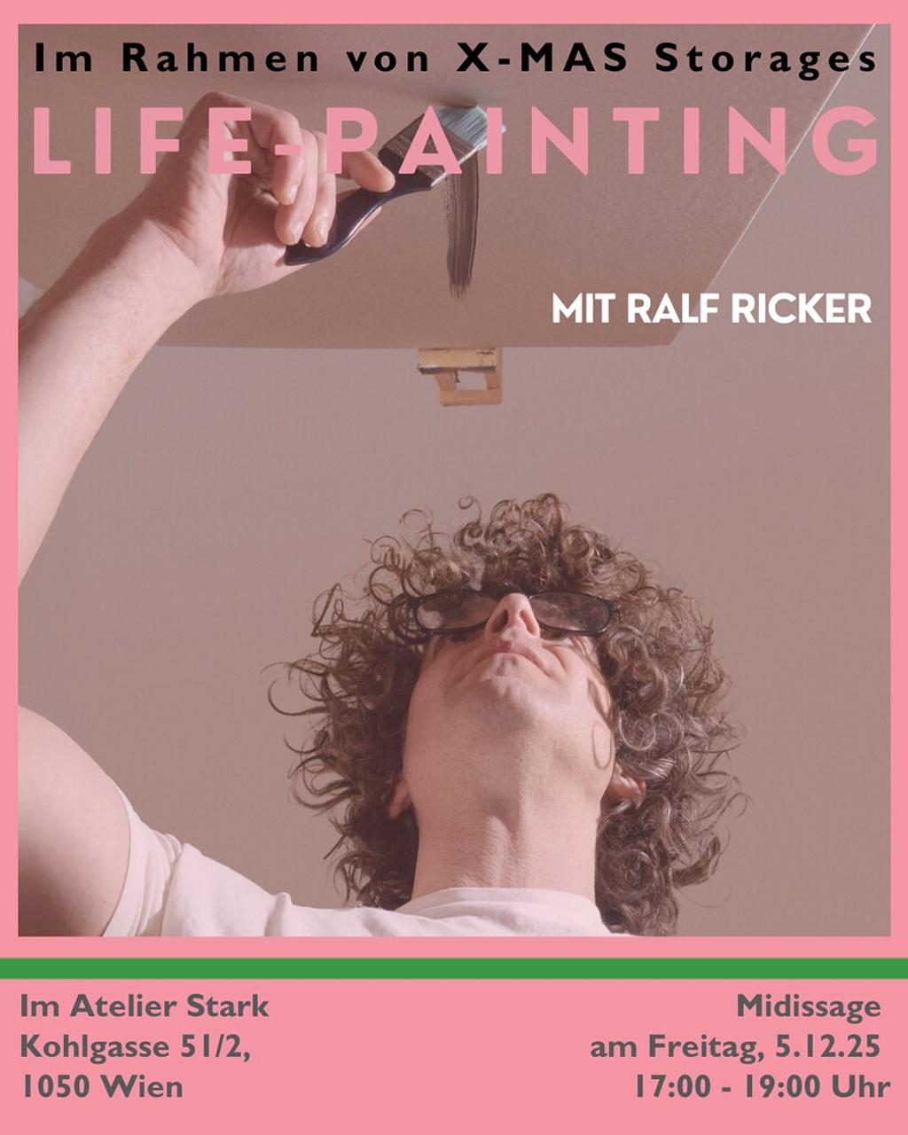 Im Rahmen der Ausstellung „STORAGES – HIDDEN TREASURES“ laden die Künstler:innen am Freitag, 5. Dezember 2025, von 17–19 Uhr zur Midissage mit einem besonderen Highlight: einem Live Painting von Ralf Ricker, der mit expressiver Handschrift Menschen und ihre Befindlichkeiten unmittelbar auf die Leinwand bringt. Die Gäste sind eingeladen, Ralf Ricker beim Prozess über die Schulter zu schauen und mit den anwesenden Künstler:innen ins Gespräch zu kommen. Deren Werke sind seit dem 27. November in Starks Atelier-Galerie zu sehen: persönliche Archivstücke, frühe Werkphasen, experimentelle Serien oder Lieblingswerke. Acht Positionen der zeitgenössischen Kunst aus Österreich und Deutschland entfalten dabei ein vielfältiges Spektrum zwischen Abstraktion und Gegenständlichkeit.
