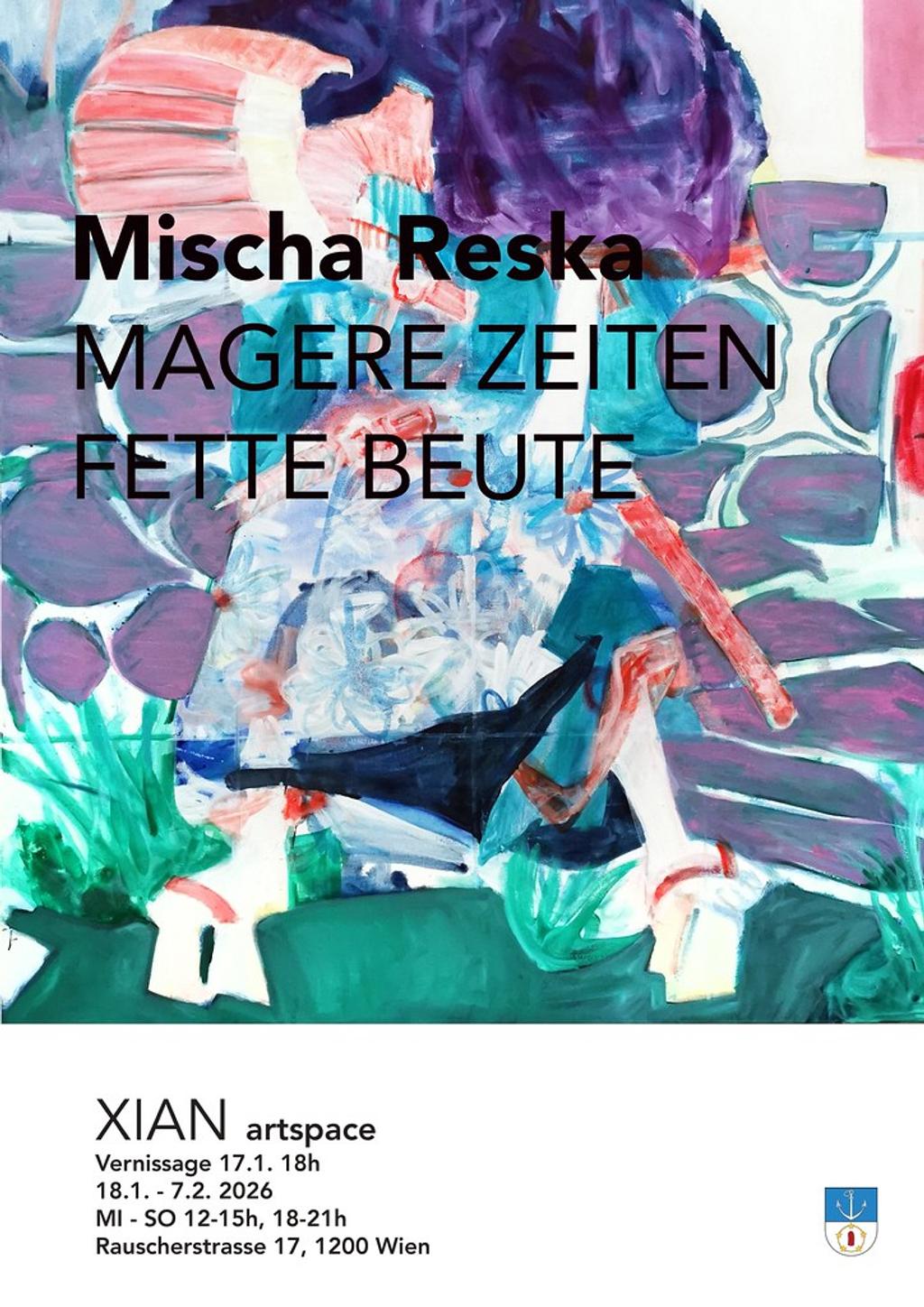 ➜ edit + new album ev_0329fhp1Rw2wvfTyr6hW7H 2 Termine Samstag 17. Jänner 17. Jänner Jän. Samstag Sa 18:00 Eröffnung Mischa Reska: Magere Zeiten, Fette Beute Sonntag 18. Jänner - Samstag 7. Februar So 18. Jän. - Sa , 7. Feb. Ausstellung Mischa Reska: Magere Zeiten, Fette Beute XIAN artspace Vernissage 17.1. 18h 18.1. - 7.2. 2026 ...Mehr lesen