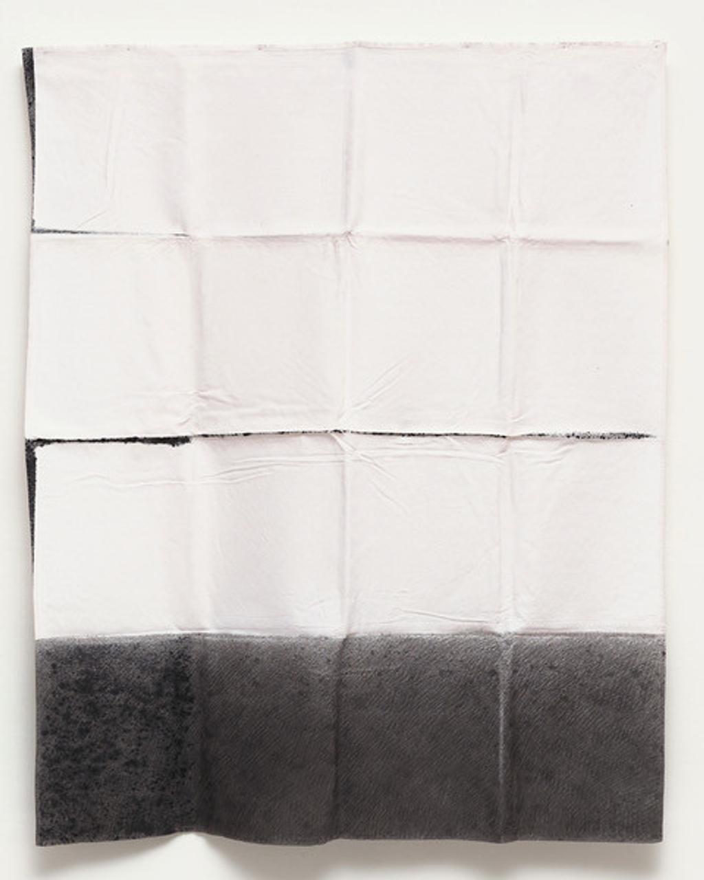 Letizia Werths Werkserie Elsewhere bringt gebrauchte Haushaltsstoffe ins Spiel – Textilien, die schon Teil von Gesprächen, Alltäglichkeiten und Vergessenem waren. Durch grafische Überarbeitung mit Grafit und Tusche werden diese Tücher aus ihrem funktionalen Kontext herausgelöst und in fragile Bildräume überführt, die wie