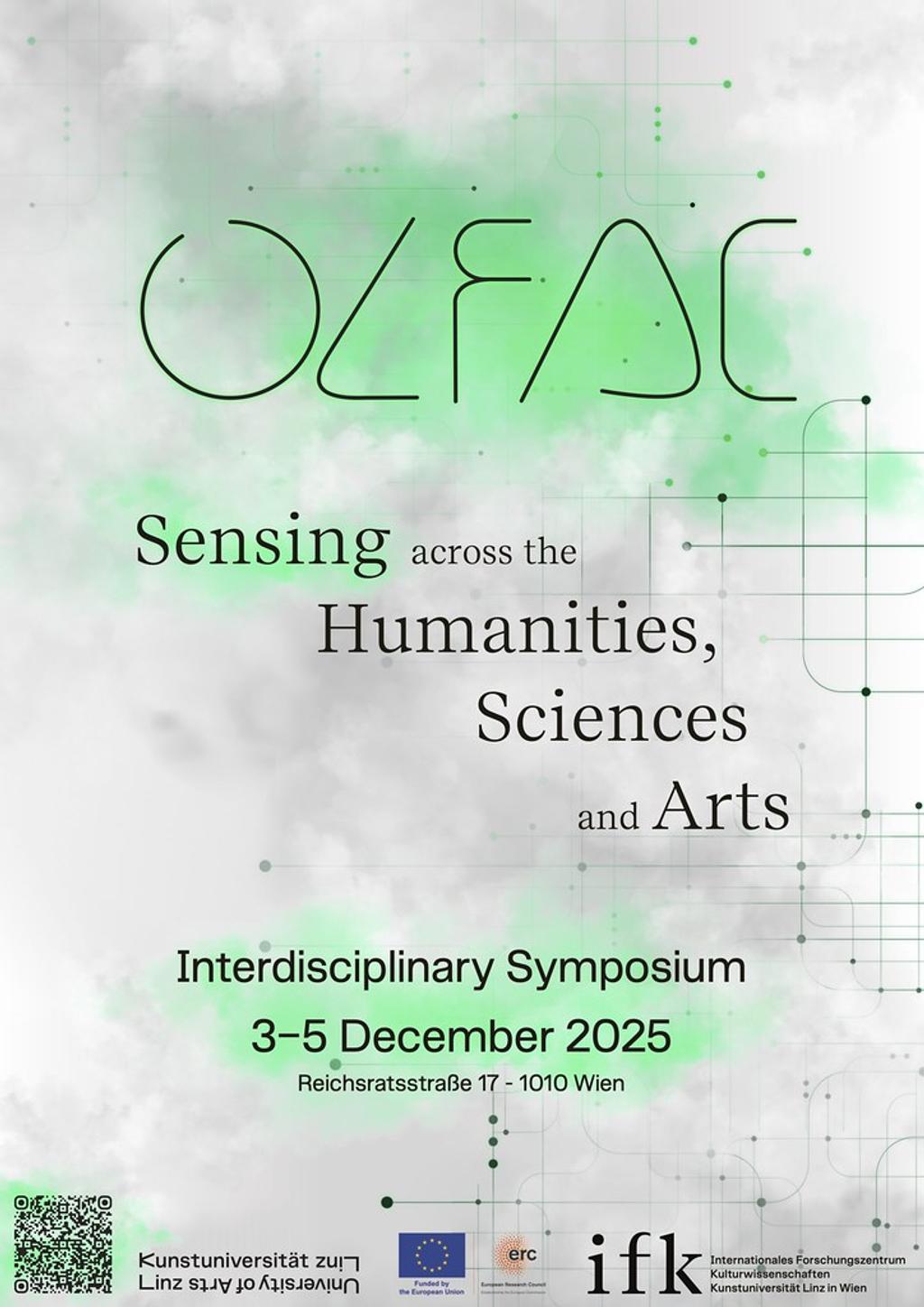 Organisiert vom ERC-Forschungsprojekt OLFAC – Exploring the Intervening Performativity of Smell (Kunstuniversität Linz) in Kooperation mit dem ifk Internationalen Forschungszentrum Kulturwissenschaften bringt das Symposium eine internationale Gruppe von Wissenschaftler*innen aus Kultur- und Medienwissenschaften, Kunstgeschichte, Psychologie, Performance- und Tanzwissenschaft, Chemie und den Künsten zusammen – darunter auch Mitglieder des wissenschaftlichen Beirats des Projekts. Das Programm umfasst ”riech- und essbare” Performances und künstlerische Interventionen.