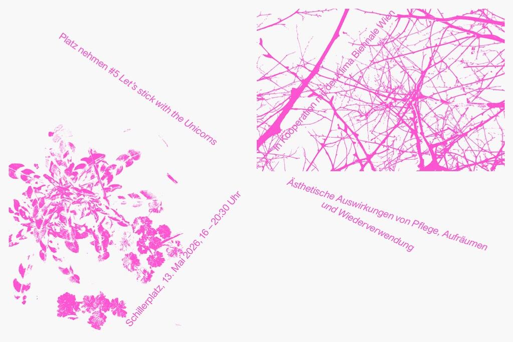 Let´s stick with the Unicorns ist eine groß angelegte künstlerische Intervention am Schillerplatz, die den öffentlichen Raum als konkrete ökologische und soziale Situation untersucht. Im Zentrum steht die Frage, wie künstlerische Praxis in Zeiten ökologischer Krisen handlungsfähig bleibt. Transformation wird dabei nicht als Ziel oder als Zukunftsversprechen verstanden, sondern als gegenwärtige Praxis. Die künstlerischen Arbeiten nutzen vorhandene Materialien, Vegetation, Gebrauchsspuren und zeitliche Prozesse, um sich aktiv gegen bestehende kapitalistische Klimanarrative zu positionieren. Die künstlerischen Auseinandersetzungen sind temporär, reversibel und ortsspezifisch.