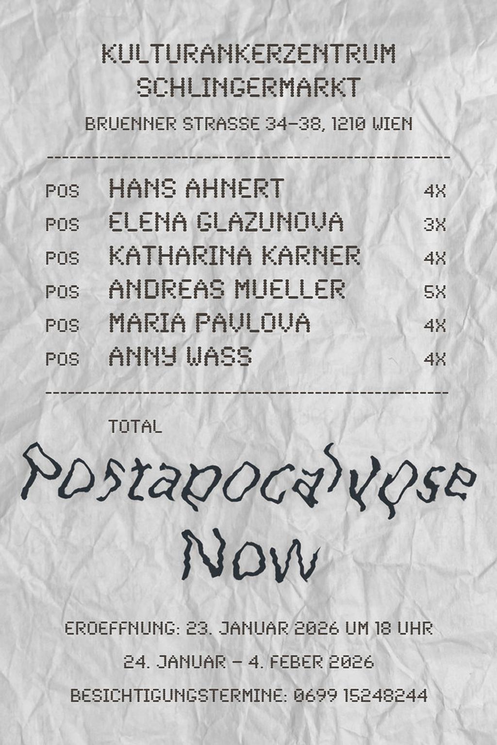 In Zeiten gesellschaftlicher Umbrüche und krisenhafter Entwicklungen, wie wir sie momentan erleben, liegt der Wunsch diese endlich hinter uns zu bringen durchaus nahe. Die Ausstellung „Postapocalypse Now“ zeigt sechs zeitgenössische Positionen im Spannungsfeld zwischen Introspektion und Gesellschaftskritik. Sie alle vereint die Sehnsucht nach Besserung, nach einem “Danach” und die Antizipation einer Zukunft, die uns schon jetzt nach vorne blicken läßt.