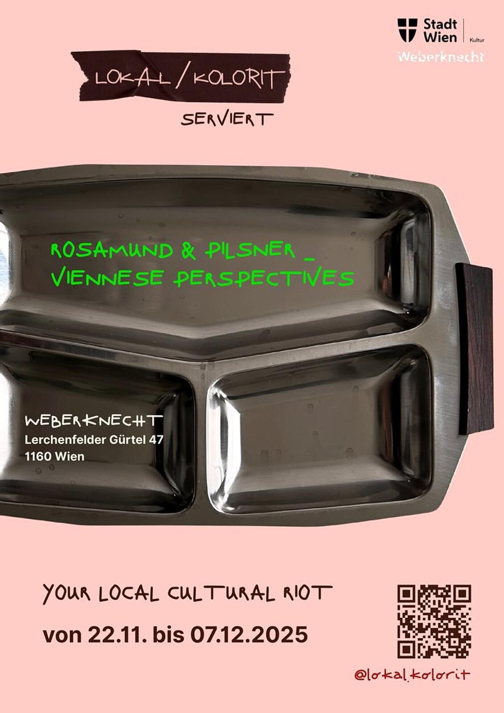 Das Pop-Up-Projekt ROSAMUND & PILSNER _ VIENNESE PERSPECTIVES verwandelt das Weberknecht am Wiener Gürtel für zwei Wochen in einen temporären Kunst- und Kulturraum. Gezeigt werden Arbeiten von 15 Künstler*innen aus den Bereichen Bildende Kunst, Kryptokunst und Fotografie, begleitet von Talks, Performances und DJ-Sets.