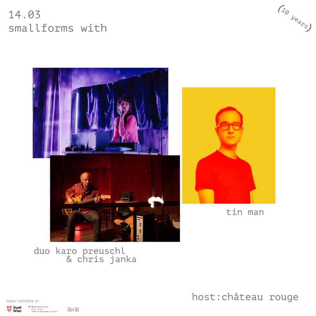 Chris Janka, *in Salzburg, lebt in Wien (A). Arbeitet als Musiker, Komponist, Künstler, Klangforscher, Maschinenbauer und Tonstudiobetreiber an der Schnittstelle von Musik über neue Medien und Sound Art zu technischen Fragestellungen und Interdisziplinären Umsetzungsmöglichkeiten. Chris Janka musiziert mittels einer umgebauten E-Gitarre ein von Wendy Carlos ersinntes Stimmsysthem (Alpha Tuning) bei dem es keine Oktaven, dafür aber perefekte Quinten gibt. Dies wird durch den 20 000 Volt Verstärker “Sparklifier” über Funkenschlag in Ton umgewandelt. Karo Preuschl philosophiert darüber in ihrer gewohnt intensiven Textlichkeit, die Elektronik wird dabei ebenfalls durch den Sparklifier in neue Volthöhen transformiert.