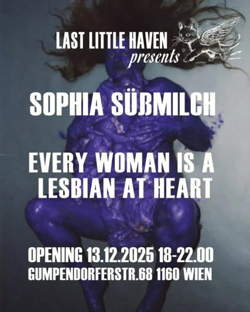 LAST LITTLE HAVEN präsentiert: SOPHIA SÜSSMILCH „EVERY WOMAN IS A LESBIAN AT HEART“ mit drei neuen Werken, die speziell für die Ausstellung produziert wurden und erstmals in unserem Last Little Haven zu sehen sind. In dieser Ausgabe verbindet Süßmilch popkulturelle und subkulturelle Referenzen mit ihrer charakteristischen Respektlosigkeit und greift dabei auf den Aufruf der queer-feministischen Bewegung zurück, das Patriarchat durch Queerness zu überwinden, während sie gleichzeitig Visionen einer queeren Utopie andeutet. Sie hinterfragt auch historische Strategien des Widerstands – indem sie sich auf eine BDSM-Medaille aus dem Barchive bezieht, queeren Archivaktivismus erforscht und auf die Wurzeln von BDSM in der lesbischen Subkultur verweist, bevor es von cisgeschlechtlichen Männern gekapert und neu verpackt wurde – und eröffnet damit den Diskussionsraum für neue Strategien des queeren Widerstands.