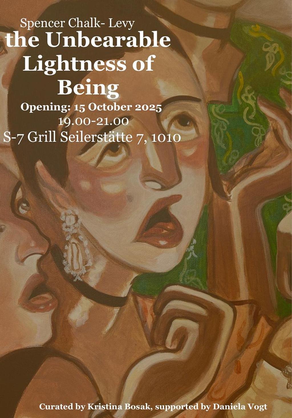 In his new solo show “The Unbearable Lightness of Being” Spencer Chalk-Levy showcases his new series of minis “The Grasshopper” alongside his recent large-format works reflecting on society, togetherness, the “lightness” and the “heaviness” of our reciprocal being. At the heart of the show is a striking large format tapestry, a signature of his practice, inviting us to encounter all facets of his artistic journey, which unfolds the story of Spencer’s recent years in Vienna.