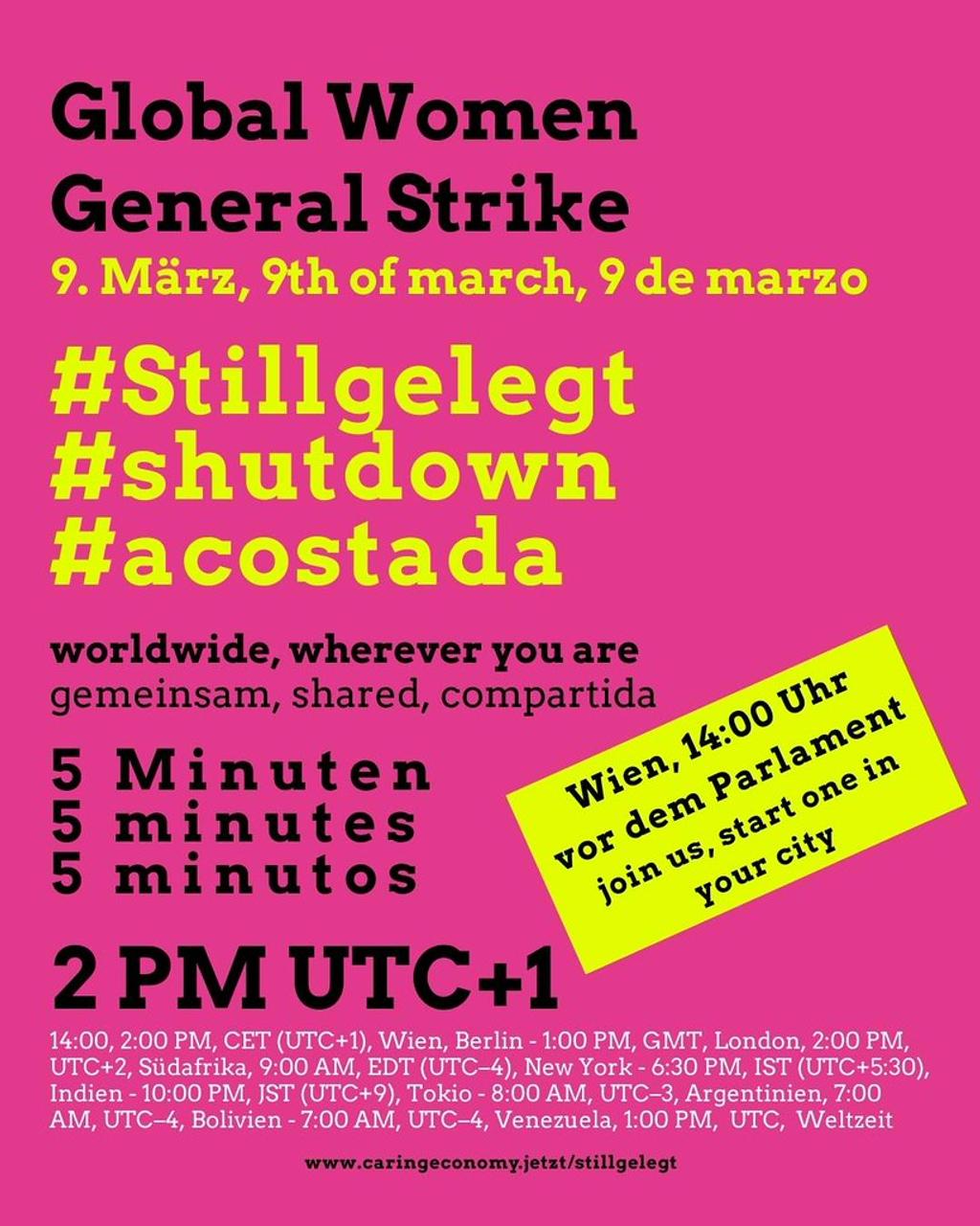 14:00 vor dem Parlament - 5 Minuten kollektive #stillgelegt-Aktion - vernetzt, zeitgleich, weltweit