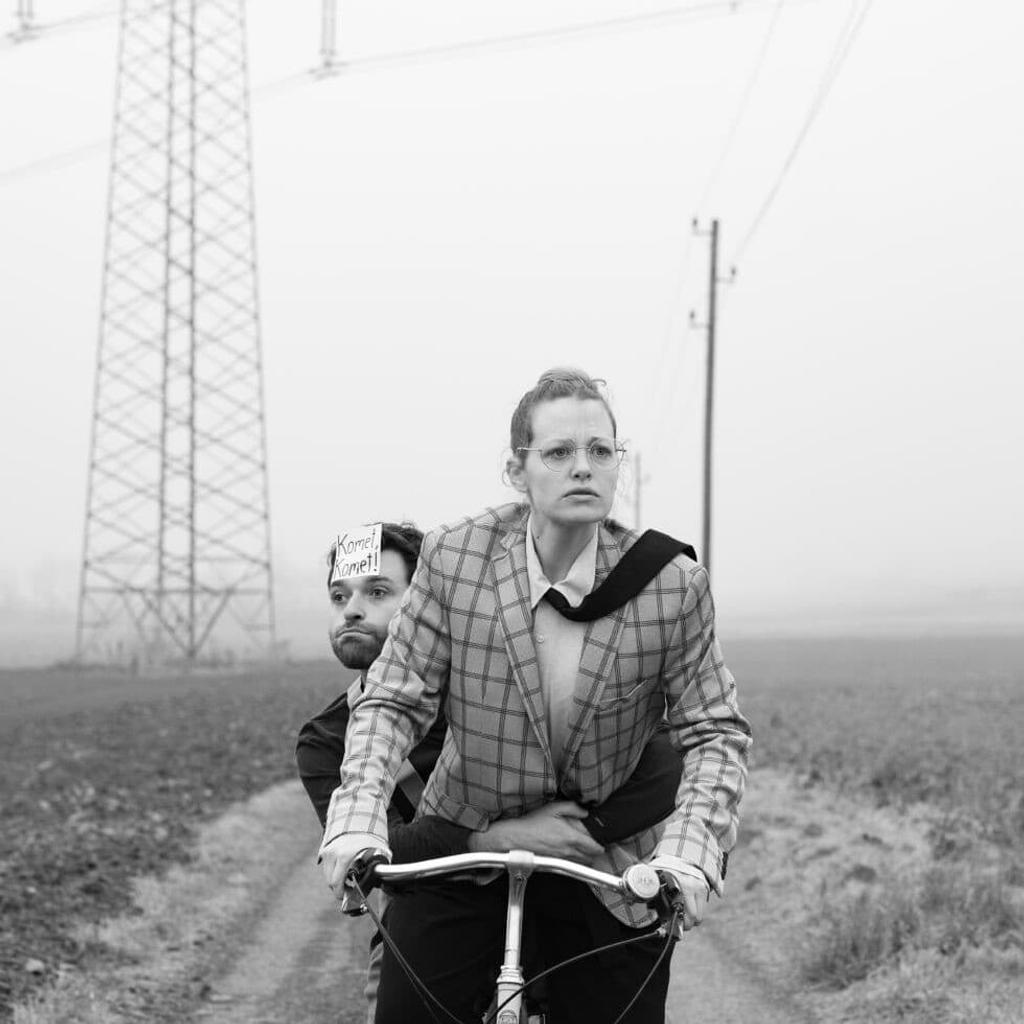 Ein zur Bühne umgebautes Lastenfahrrad, eine Handvoll Versatzstücke und die beiden Darsteller*innen Henrietta Rauth und Johannes Sautner, die gemeinsam in ca. 30 verschiedene Rollen schlüpfen; mehr braucht die Regisseurin Ursula Leitner nicht, um Jura Soyfers hochaktuelle Komödie im Rahmen der 40-Jahr-Feier des Theaters Westliches Weinviertel zum Leben zu erwecken.
