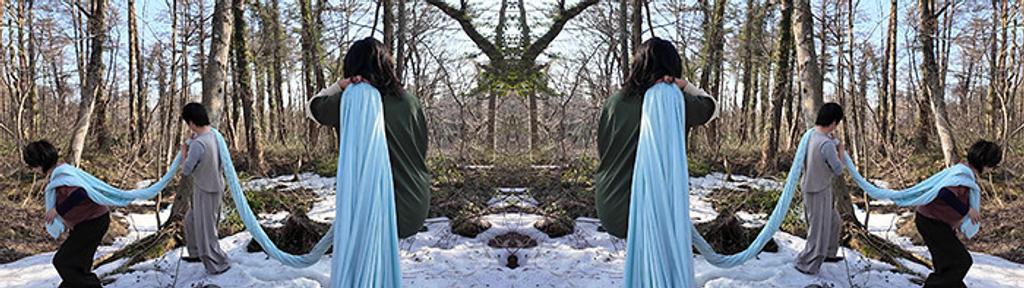 Das Kollektiv AMO (Aki Namba, Mary Maggic, Oi Pui Hoang) erkundet im Film “Cosmic Forest, Cosmic Home” in der Landschaft von Okayama, Japan die porösen Beziehungen zwischen den Wirklichkeiten – das Sichtbare und das Unsichtbare, das Vergangene und das Gegenwärtige, der Körper und das Land, das Land und die Zugehörigkeit. Die Erkundung nimmt Bezug auf Traditionen des Shinto, Buddhismus und Animismus, in denen das Bewusstsein und eine Verbindung zur Natur verkörpert sind. Das sind Traditionen, die in einer kapitalistischen Zeit zunehmend verblassen.