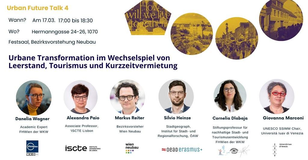 Wie verändern Leerstand, Tourismus und Kurzzeitvermietung unsere Städte? Dieser Frage widmet sich der öffentliche Talk in der Bezirksvorstehung Neubau. Neubau verzeichnete 2024 1.077.448 Gästeübernachtungen, zugleich verwies die Bezirksvorstehung 2025 auf rund 720 auf Airbnb gelistete Wohnungen, was etwa 4,2 % aller Wohnungen im Bezirk entspricht. Diskutiert werden die Folgen für Wohnraum, Nachbarschaften und urbane Alltagsräume ebenso wie die aktuellen Wiener Regulierungen, die Kurzzeitvermietung seit Juli 2024 deutlich strenger fassen. Der Talk findet im Rahmen eines Blended Intensive Programme (BIP) statt, in dem sich internationale Forscher:innen und Studierende aus Lissabon, Venedig, Wien und Madrid mit Fragen urbaner Transformation auseinandersetzen. Die Veranstaltung bringt lokale und internationale Perspektiven aus Forschung, Stadtverwaltung und Politik zusammen. Es diskutieren Cornelia Dlabaja (Stiftungsprofessur für nachhaltige Stadt- und Tourismusentwicklung, FHWien der WKW), Danelia Wagner (Academic Expert, FHWien der WKW), Alexandra Paio (Associate Professor, ISCTE Lisbon), Giovanna Marconi (UNESCO SSIMM Chair, Università Iuav di Venezia) und Silvio Heinze (ÖAW, Stadtgeograph). Begrüßt wird die Veranstaltung von Markus Reiter, Bezirksvorsteher Wien Neubau.