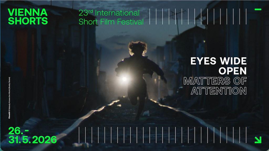 Unter dem Motto Eyes Wide Open widmet sich VIENNA SHORTS von 26. bis 31. Mai der Aufmerksamkeitsökonomie im Zeitalter von Informationsüberfluss, künstlicher Intelligenz und rechtspopulistischer Polarisierung. Mehr als 300 internationale Kurzfilme werden in den schönsten Kinos Wiens zu sehen sein, darunter Wettbewerbe, Porträts, Late Nights und Kinderprogramme.