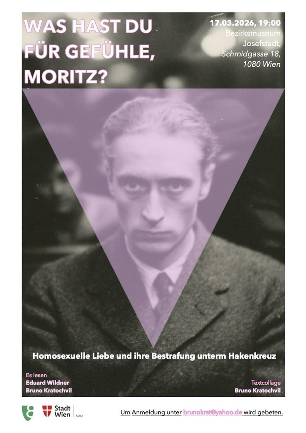 Liebe und Bestrafung: Josef Kohout, Franz Doms und Walter Arlen. Drei junge Männer aus unterschiedlichen sozialen Schichten, die eine Gemeinsamkeit haben: Sie lieben das eigene Geschlecht. Auszüge aus ihren Biografien treffen in einer Lesung auf Dichtung, Polizeiprotokolle und die Lieder einer vergessenen Stimme.