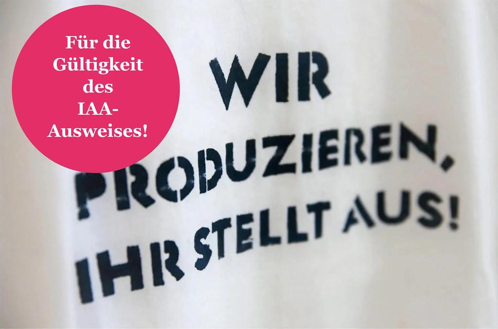 Künstler:innen sind keine Freizeitgäste in Ausstellungen, sondern Produzent:innen von musealer Zukunft. Der IAA-Ausweis ist ein anerkanntes Berufsdokument. Er wird herausgegeben von der International Association of Art, in Österreich ausgestellt von der IG Bildende Kunst.