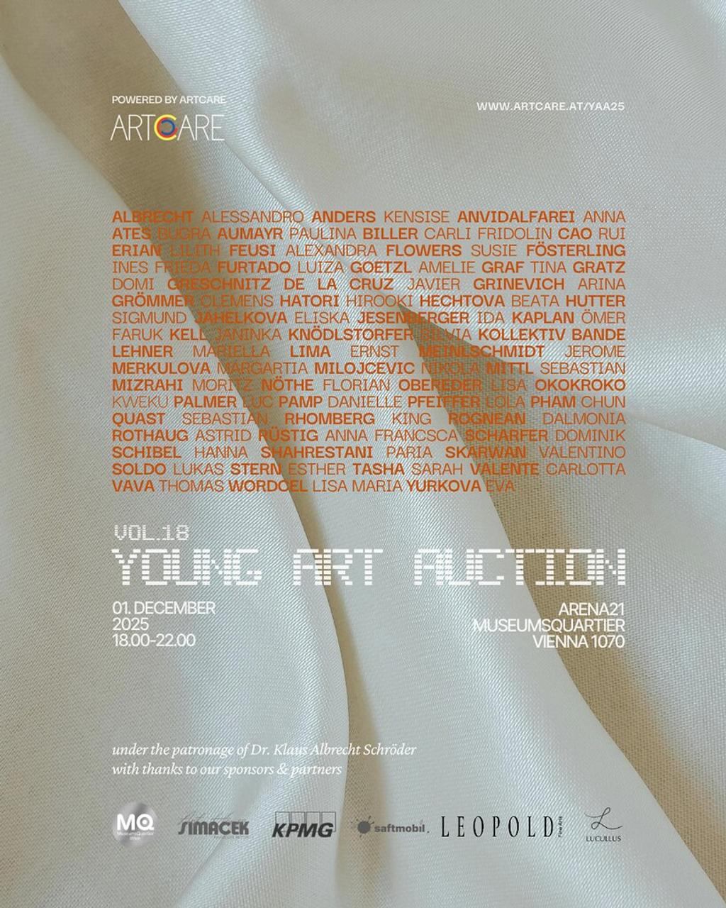 Was einst als Initiative zur Förderung junger Künstler:innen begann, ist heute eine lebendige Plattform, wo Mut, Kreativität und Entdeckergeist auf ein offenes Publikum treffen. Dabei steht die faire Unterstützung junger Talente im Mittelpunkt: Die Künstler:innen erhalten 90 % des Hammerpreises. Unter der Schirmherrschaft von Prof. Dr. Klaus Albrecht Schröder und mit Mag. Andrea Jungmann als Auktionatorin verspricht der Abend erneut zu einem besonderen Ereignis innerhalb der Wiener Kunstszene zu werden.,Alle Kunstwerke sind jetzt online einsehbar und es können bereits Gebote abgegeben werden. Am 1. Dezember werden sämtliche Werke dann vor Ort live auktioniert, wobei auch die bereits online abgegebenen Gebote berücksichtigt werden.